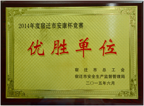 近日,公司獲評宿遷市總工會和宿遷市安全生產監(jiān)督管理局聯(lián)合頒發(fā)的2014年度宿遷市安康杯競賽優(yōu)勝單位稱號。獲此殊榮的本次表彰全市共有18家單位,開發(fā)公司也是園區(qū)唯一一家獲得優(yōu)勝單位稱號。
