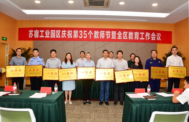 9月10日下午,蘇宿工業(yè)園區(qū)召開(kāi)慶祝第35個(gè)教師節(jié)暨全區(qū)教育工作會(huì)議,開(kāi)發(fā)公司喜獲園區(qū)教育發(fā)展貢獻(xiàn)一等獎(jiǎng)。