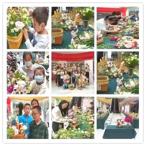 活動(dòng)現(xiàn)場,花藝?yán)蠋熢敿?xì)講解了花藝的歷史淵源、特色、插花類型和技巧,并手把手傳授插花實(shí)操要領(lǐng)。在老師的指導(dǎo)幫助下,參與的媽媽和孩子們邊看邊學(xué),認(rèn)真創(chuàng)作,將原本普通的花草經(jīng)過巧手制作成精致的插花作品。活動(dòng)得到了媽媽和孩子的廣泛參與,尤其是媽媽們手捧著自己孩子制作的色彩鮮艷、錯(cuò)落有致的花束拍照留念,臉上溢滿了幸福。