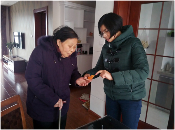 “年紀(jì)大了,出門總會迷路找不到家”,社區(qū)老阿姨不經(jīng)意的一句話卻提醒了社工。從3月5日起,社工便陸續(xù)走進(jìn)小區(qū),給社區(qū)12位70歲以上的老人送上“黃手環(huán)”。