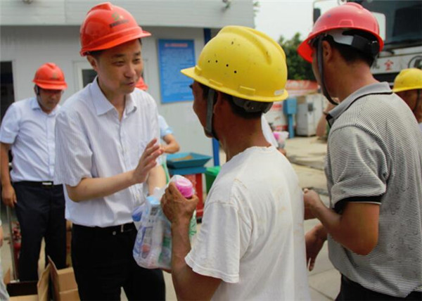 許紹杰仔細(xì)詢問了一線工人工作、生活情況,給他們送上毛巾、礦泉水、沐浴露等防暑降溫用品,并要求施工單位根據(jù)夏季高溫氣候特點及時調(diào)整作息時間,認(rèn)真落實防暑降溫措施,充分保證工人的休息,防止中暑,確保施工安全。
