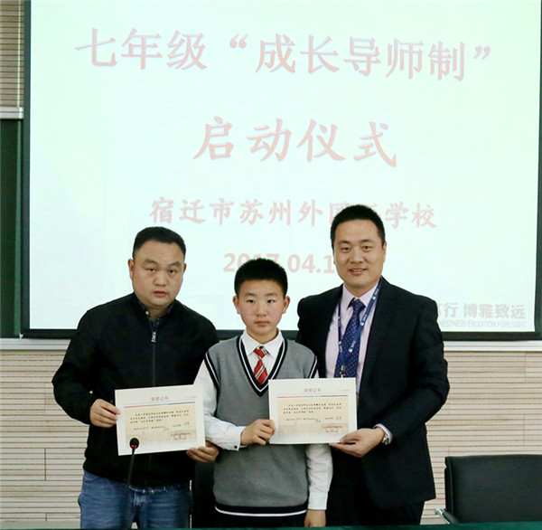 近日,宿遷市蘇州外國語學(xué)校七年級(jí)16位孩子和他們的家長監(jiān)護(hù)人還有他們新認(rèn)的“干爹”“干媽”齊聚學(xué)校階梯教室,舉行隆重的簽約儀式。這些“干爹”“干媽”是學(xué)校給首批孩子們配的成長導(dǎo)師,每位教師與一個(gè)孩子結(jié)對(duì),全方位關(guān)心孩子的成長,陪伴孩子們一起度過快樂而充實(shí)的初中生活,力求“個(gè)個(gè)進(jìn)步,人人成星”。“成長導(dǎo)師制”這種親情化、個(gè)性化、人本化的育人模式,是宿蘇外實(shí)施素質(zhì)教育,提升教育核心競爭力的需要;是宿蘇外服務(wù)家長,擴(kuò)大教育品牌影響力的需要;是宿蘇外回報(bào)社會(huì),落實(shí)“兩聚一高”,建設(shè)和諧社會(huì)的需要。
